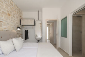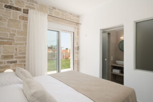 Ground Floor | Living Room & Lounge Area ( featuring a 55’ smart TV) • Dining area • Fully Equipped Kitchen • Double bedroom with Queen Size bed (1,60×2,00), En-Suite bathroom with walk in shower, direct access to the terrace • Twin Bedroom with two single beds (0,90×2,00) joined to form a King Size bed, En-Suite bathroom with walk in shower, direct access to the terrace.