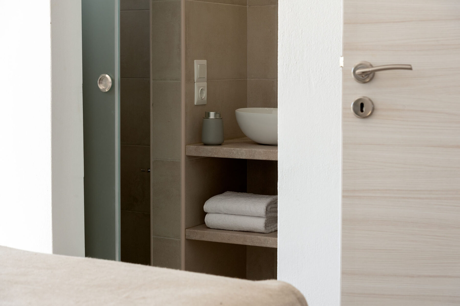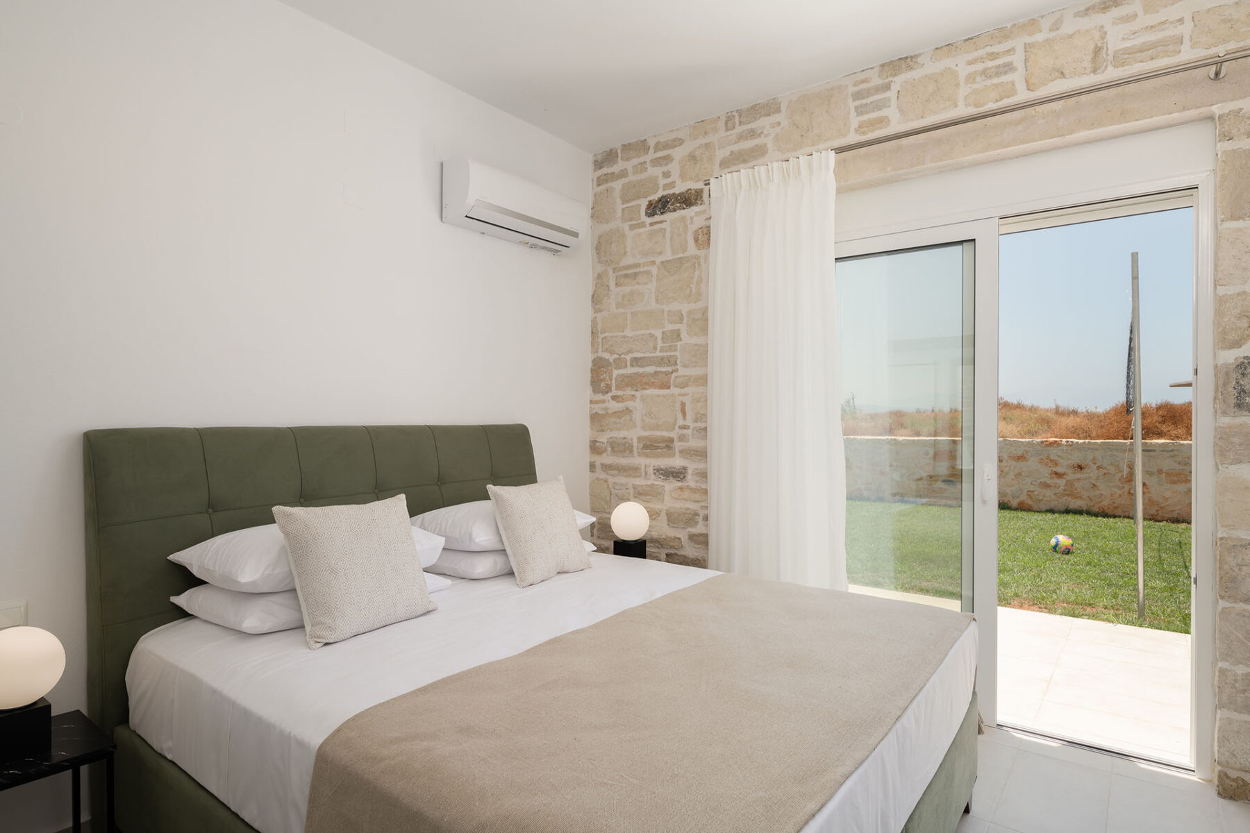 The villa features two wonderful bedrooms with en-suite bathrooms allowing plenty of space and comfort for all. Four guests can be comfortably accommodated in real beds. One more guest can be accommodated on the single sofa bed of the living room. The maximum capacity is five guests.