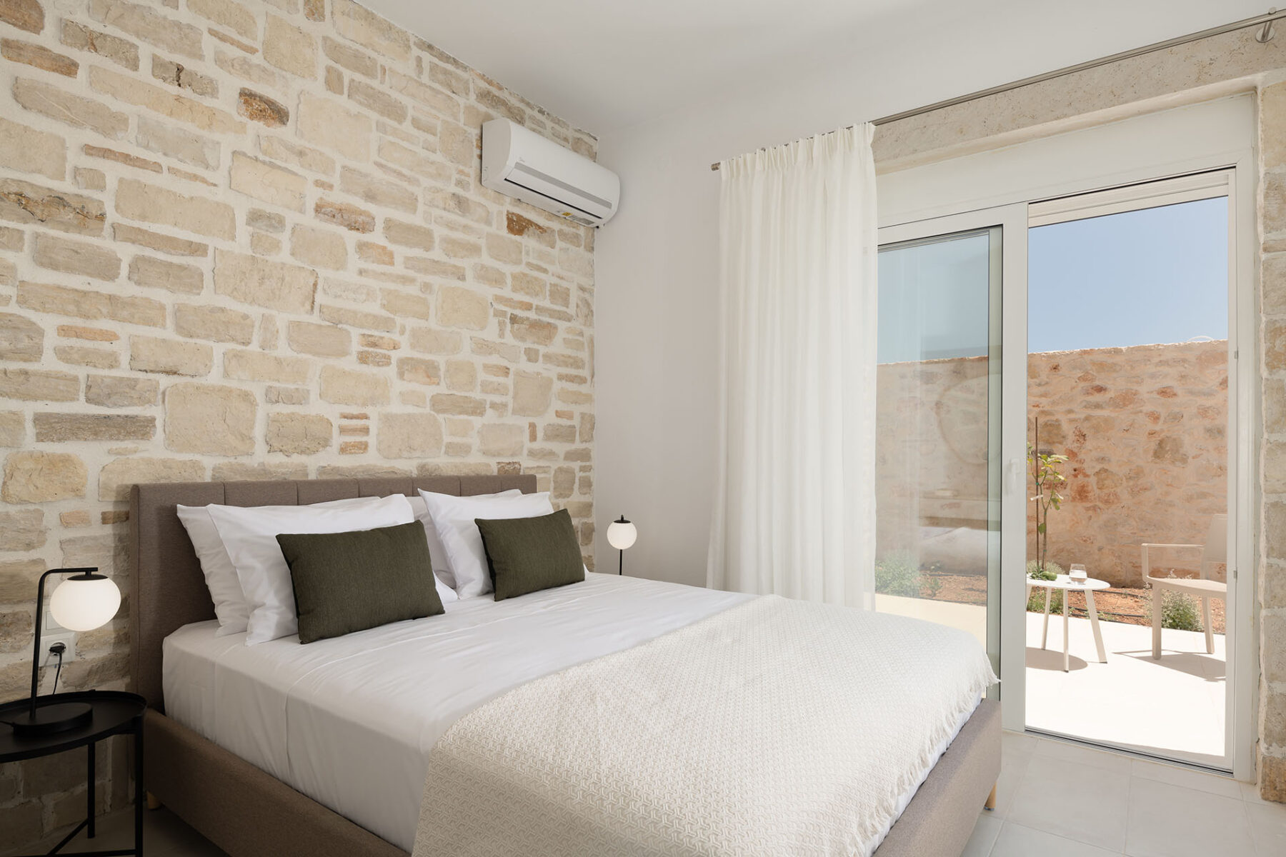 Ground Floor | Living Room & Lounge Area ( featuring a 55’ smart TV) • Dining area • Fully Equipped Kitchen • Double bedroom with Queen Size bed (1,60×2,00), En-Suite bathroom with walk in shower, direct access to the terrace • Twin Bedroom with two single beds (0,90×2,00) joined to form a King Size bed, En-Suite bathroom with walk in shower, direct access to the terrace.
