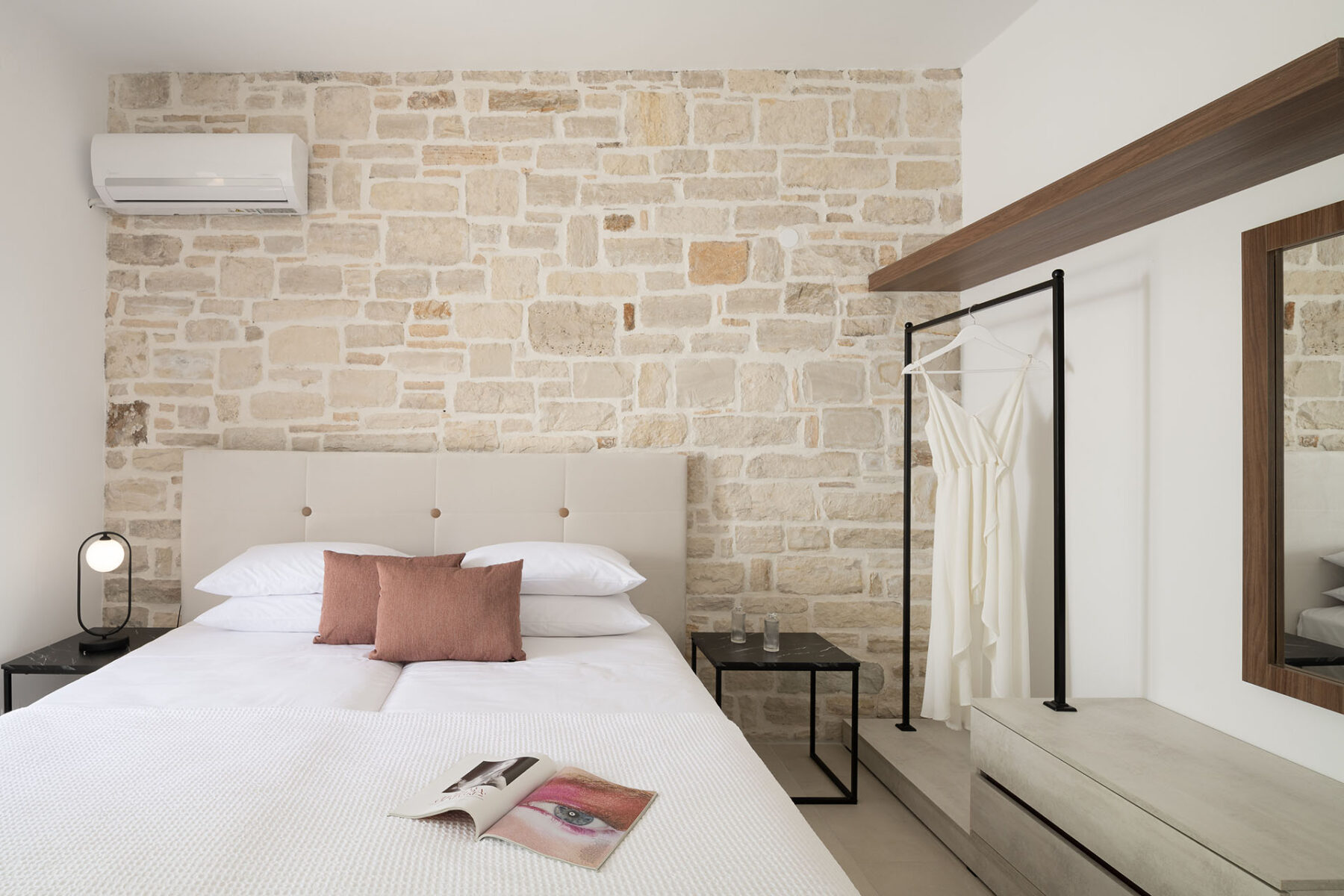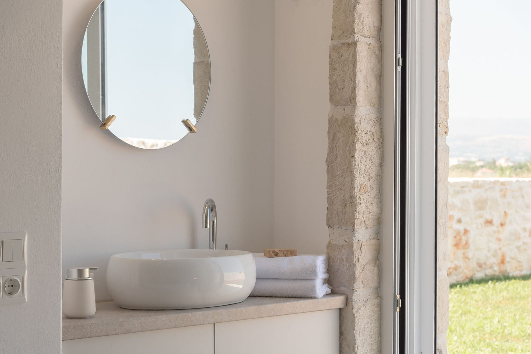 The villa features two wonderful bedrooms with en-suite bathrooms allowing plenty of space and comfort for all. Four guests can be comfortably accommodated in real beds. One more guest can be accommodated on the single sofa bed of the living room. The maximum capacity is five guests.